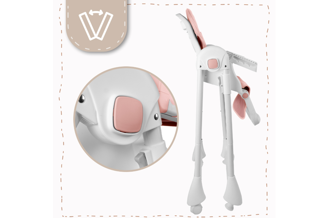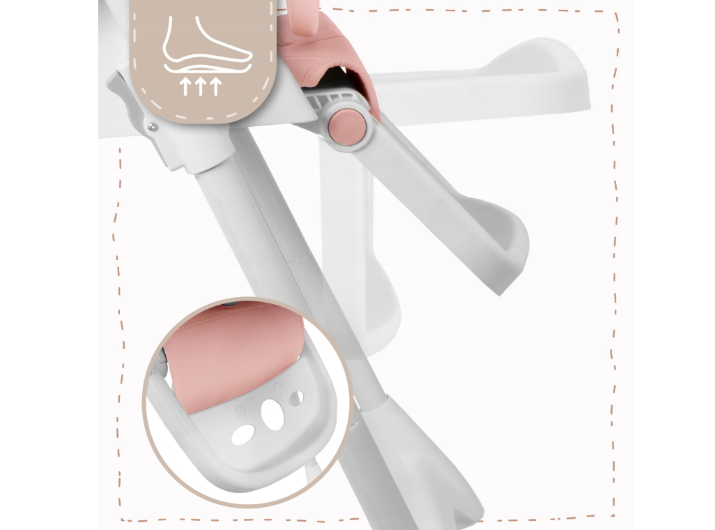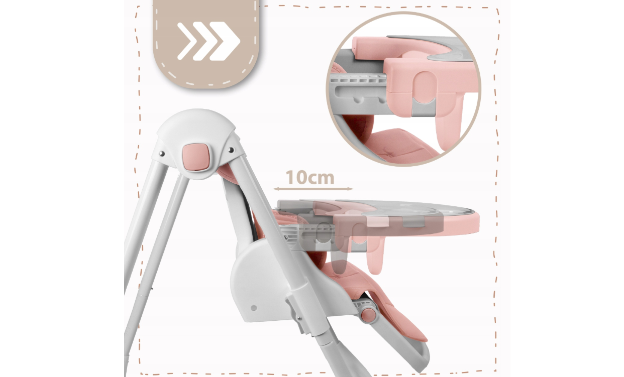 DELI este un scaun de hranire avansat care poate fi usor adaptat nevoilor in schimbare ale bebelusului dumneavoastra in crestere. Cu reglarea inaltimii in 8 pozitii , inclinarea spatarului in 4 pozitii si suportul pentru picioare reglabil , puteti ajusta perfect pozitia copilului dumneavoastra pentru hranire, odihna sau joaca.