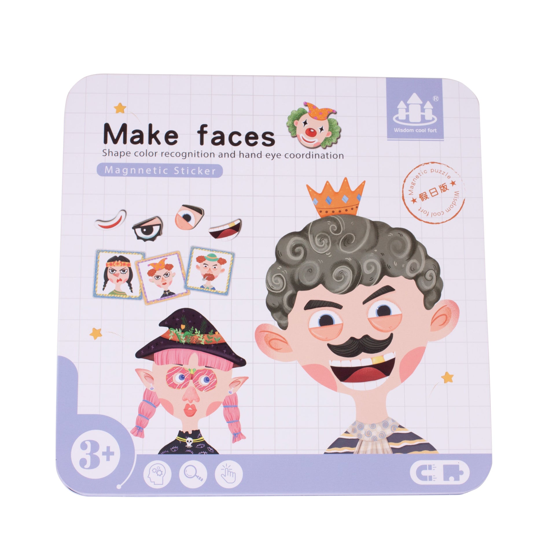 Cutia metalica contine puzzle-uri in forma de diferite elemente faciale . Copilul poate regla in mod interschimbabil ochii, gura, palariile si parul pentru a-si crea caracterul.