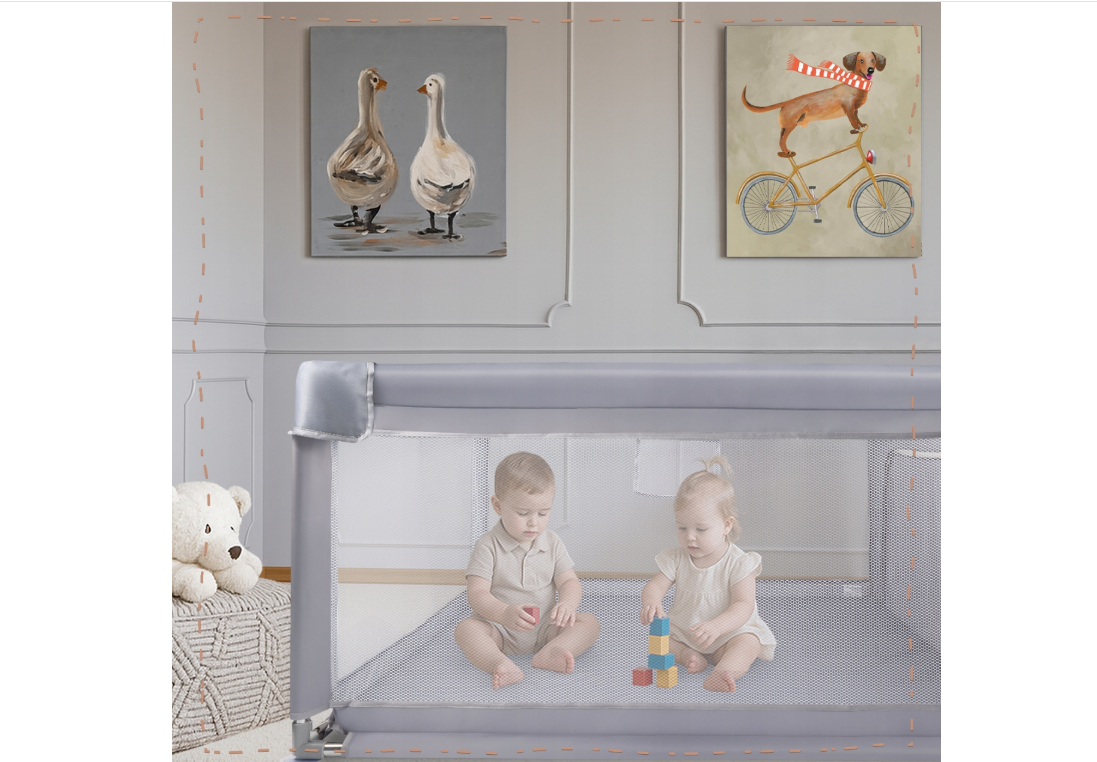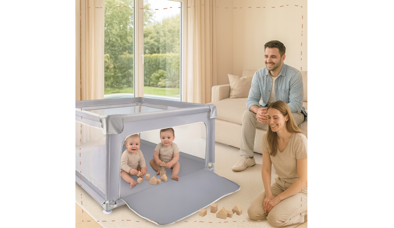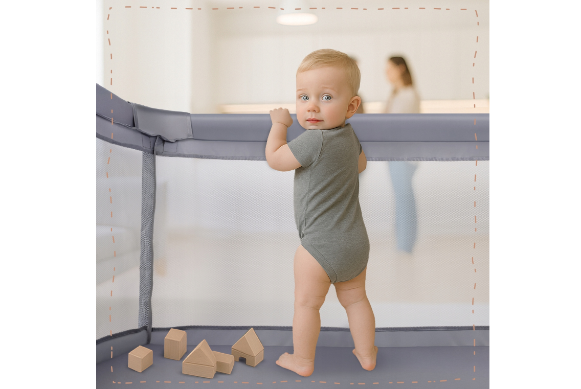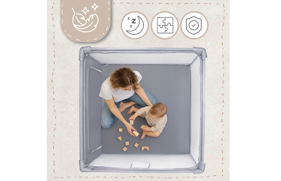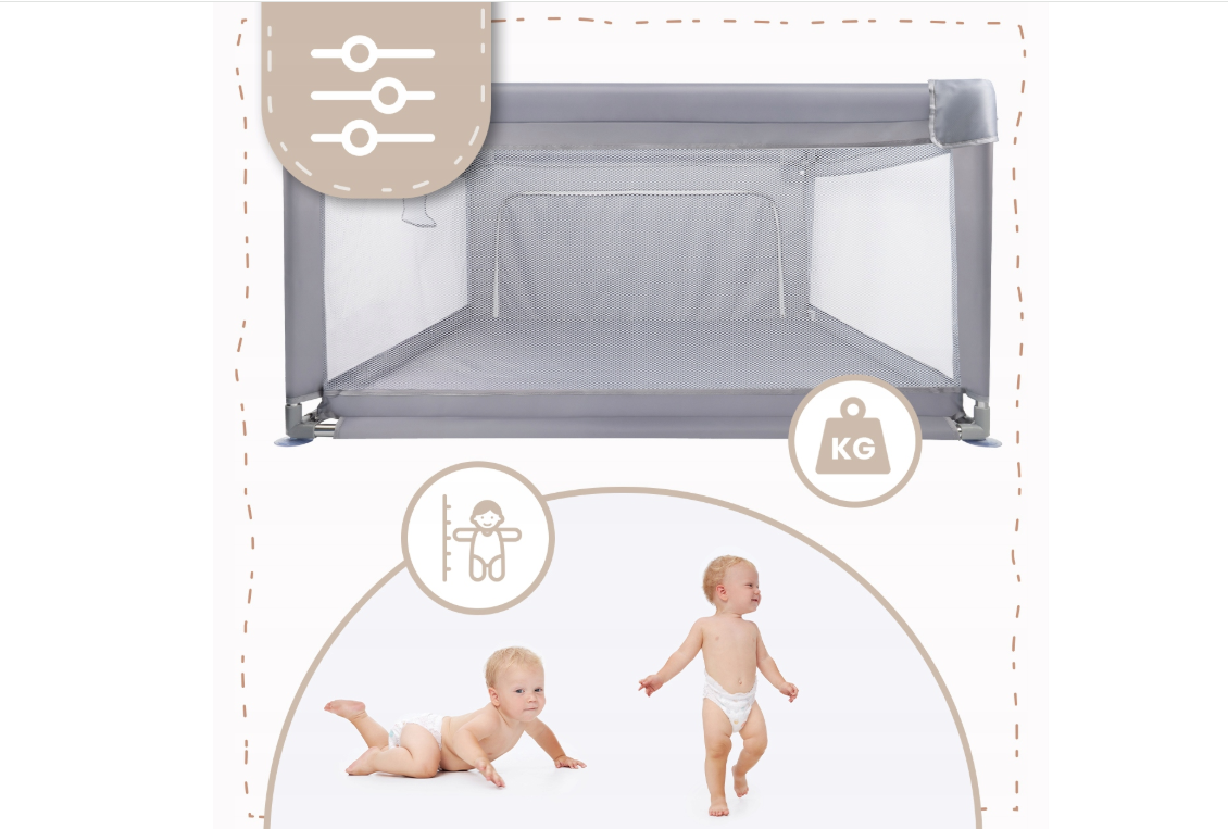 Tarcul nostru este un spatiu spatios si sigur pentru copilul dumneavoastra – perfect pentru joaca, invatarea tararii, primele incercari de a sta in picioare si explorare independenta. Datorita intrarii cu fermoar, actionata exclusiv din exterior, parintii au control deplin asupra accesului in tarc . Copiii mai mari pot intra si iesi independent cu permisiunea ingrijitorului , sprijinind dezvoltarea independentei si construind un sentiment de securitate.