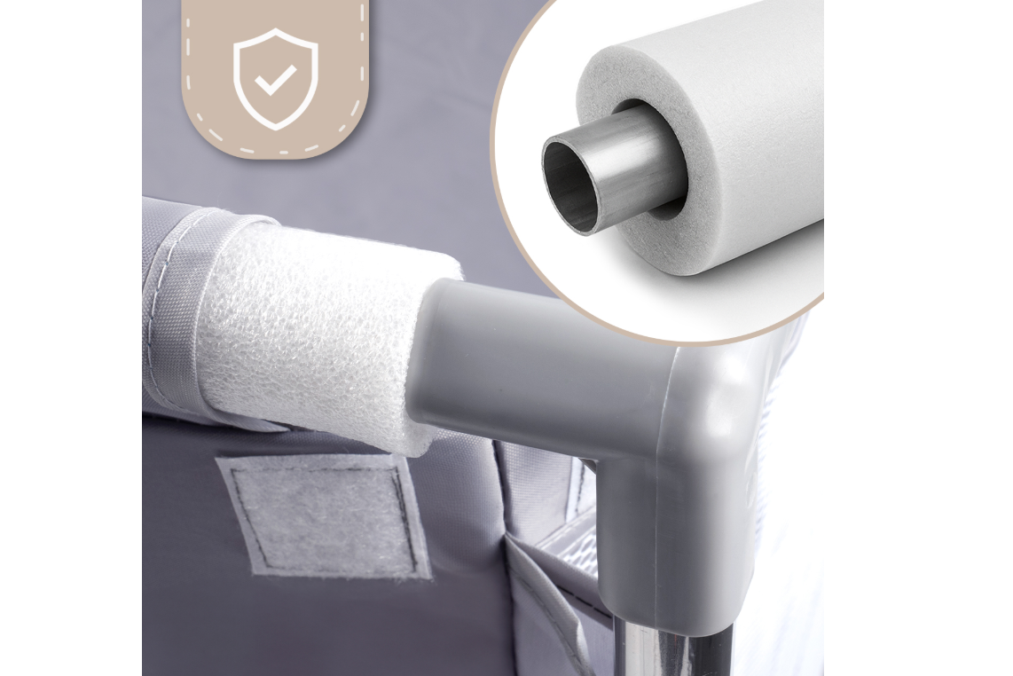 Peretii din plasa de pe trei laturi ale tarcului asigura o circulatie constanta a aerului si o vizibilitate excelenta atat pentru parinte, cat si pentru copil. Acestia va permit sa aveti un ochi nestingherit asupra micutului dumneavoastra , iar copilul dumneavoastra se simte in siguranta in imprejurimi. Plasa moale si flexibila este o alternativa excelenta la balustradele rigide, reducand riscul de impact la cadere, tarandu-se sau incercand sa se ridice. Este spatiul perfect pentru a invata sa se miste si sa se joace in siguranta, fara bariere.