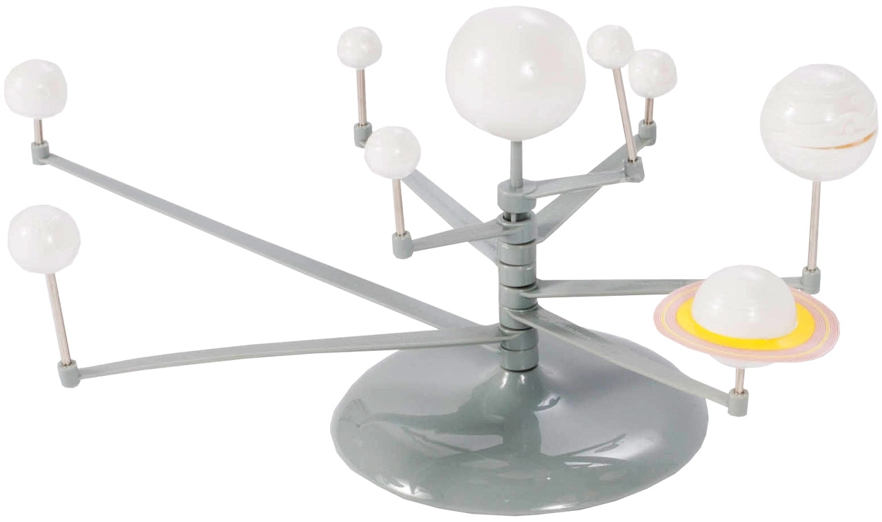 4. Introduceți tijele de oțel în planete și apoi apăsați-le în brațele suportului. (a se vedea instrucțiunile de la pagina 4 pentru localizarea planetelor).