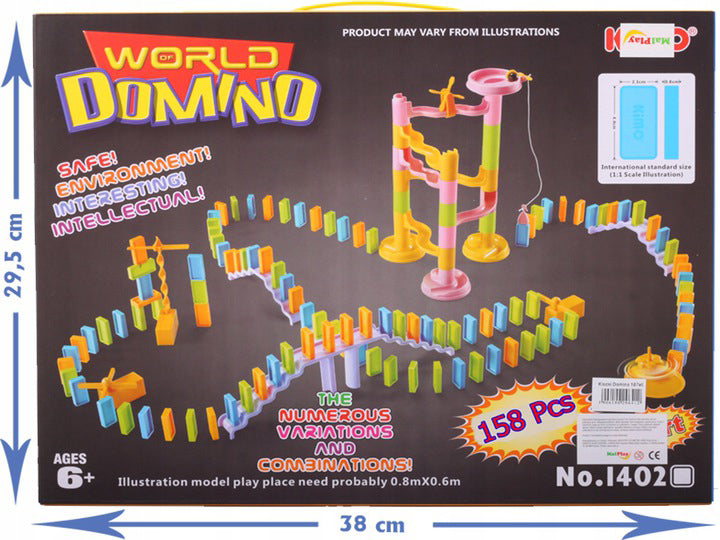 Jucăria este făcută pentru a sprijini dezvoltarea copiilor și a le trezi curiozitatea față de lumea înconjurătoare. Setul include 158 de elemente DOMINO și multe elemente care formează o cursă de obstacole. Traseul marcat constă din numeroase diapozitive interesante care disting aceste blocuri de altele. Etapa finală a jocului este de a elibera mingea, care va iniția o reacție în lanț și va răsturna toate blocurile de domino. Cuburile Domino pot fi plasate la nesfârșit, creând structuri din ce în ce mai complicate. Jocul stimulează creativitatea copilului tău și dezvoltă perfect abilitățile manuale și imaginația. Culorile intense vor atrage atenția pentru ore lungi. Un puzzle fantastic cu posibilități fără precedent pentru jocul creativ. Setul include elemente de construcție care vă permit să construiți un număr imens de piste diferite. Jocul cu acest set necesită gândire și planificare logică, spațială - astfel încât toate elementele pistei construite să aibă unghiul drept de înclinare.