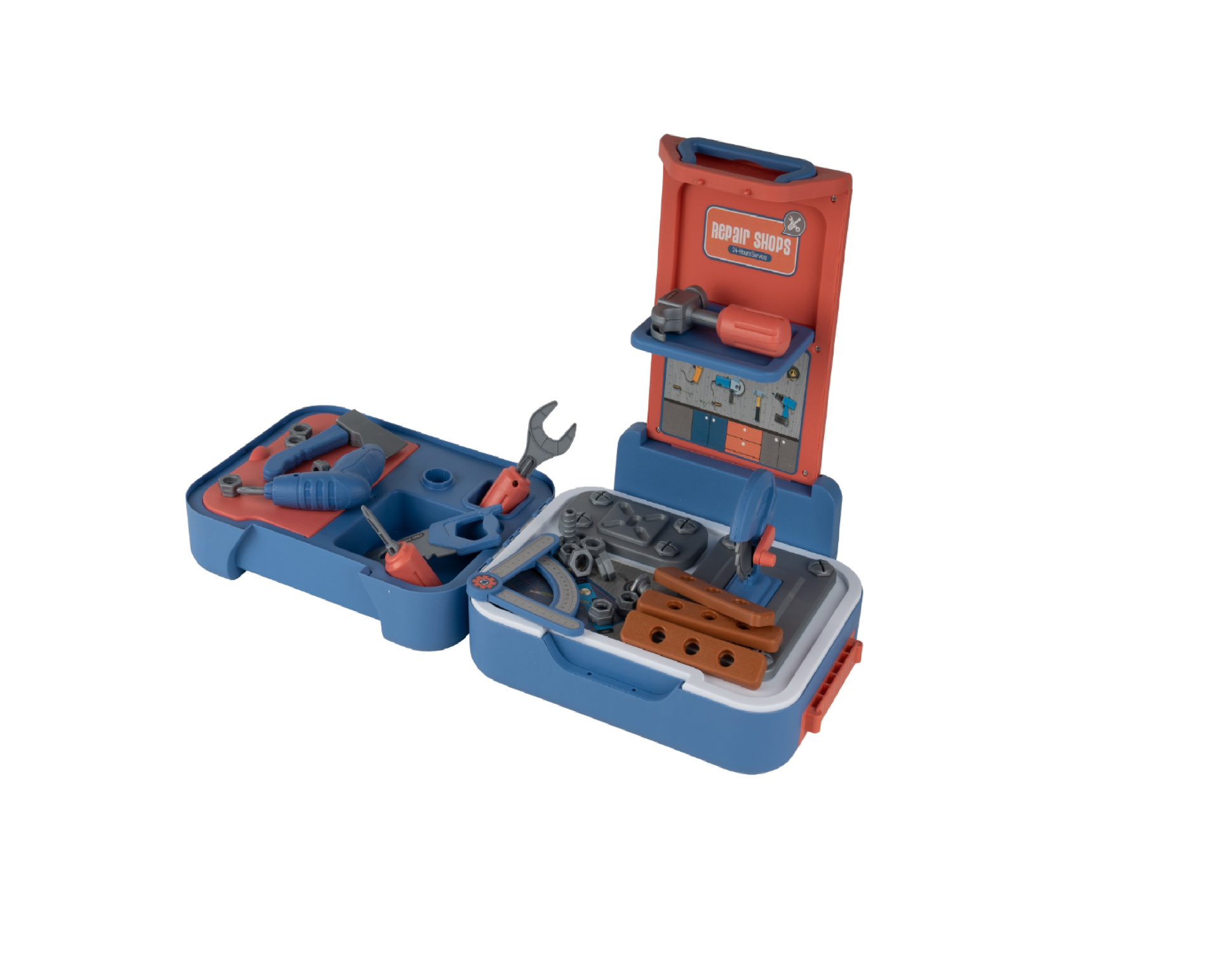 Un atelier intr-o valiza pentru copii si unelte DIY este un loc perfect pentru distractia creativa si dezvoltarea abilitatilor manuale. Jucaria invata rabdarea, acuratetea si stimuleaza pasiunea pentru bricolaj. Datorita atelierului, copilul va cunoaste instrumentele si scopul acestora.