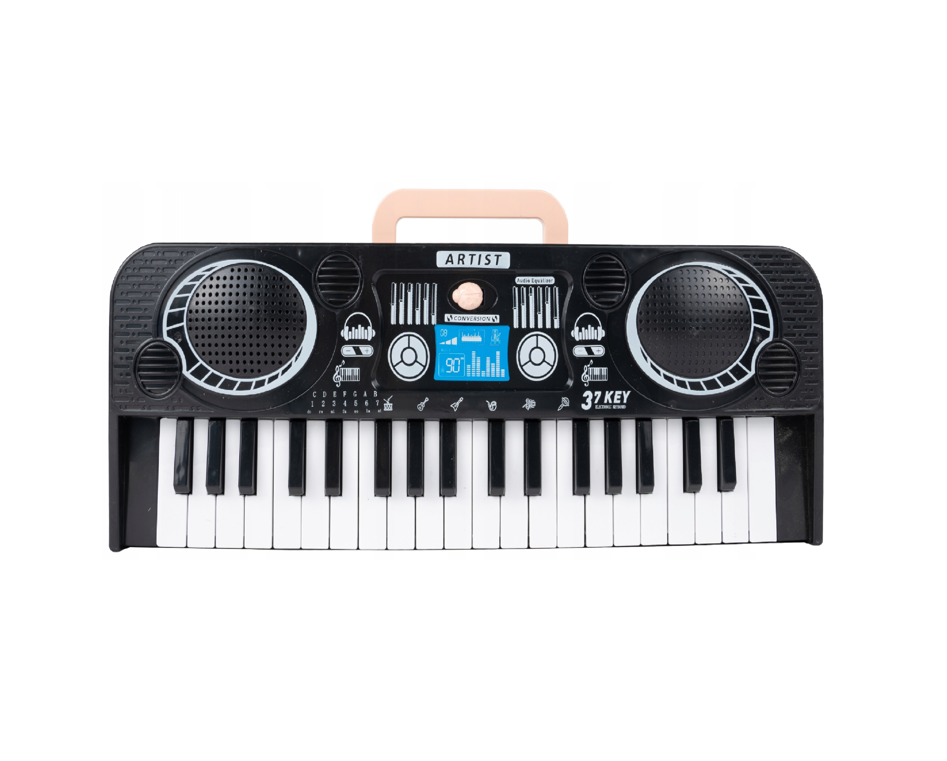 Instrumentul are 37 de taste de baza care diversifica jocul copilului. Functioneaza ca unul adevarat! Orga are, de asemenea, un maner colorat care poate fi folosit pentru a transporta instrumentul in mod convenabil. Instrumentul are si un demo - datorita caruia sunt declansate o serie de melodii diferite.