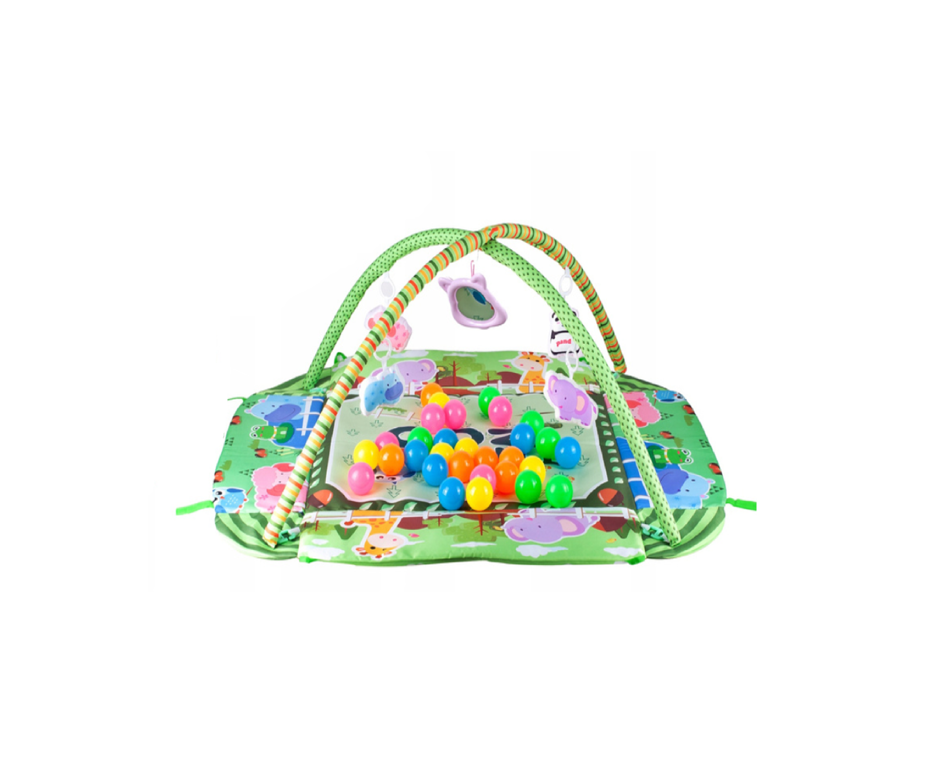 Covorasul vine cu pana la 30 de bile in 5 culori diferite. Dupa plierea covorasului, acesta poate actiona ca o piscina uscata cu bile, ceea ce va multumi cu siguranta fiecare copil mic.