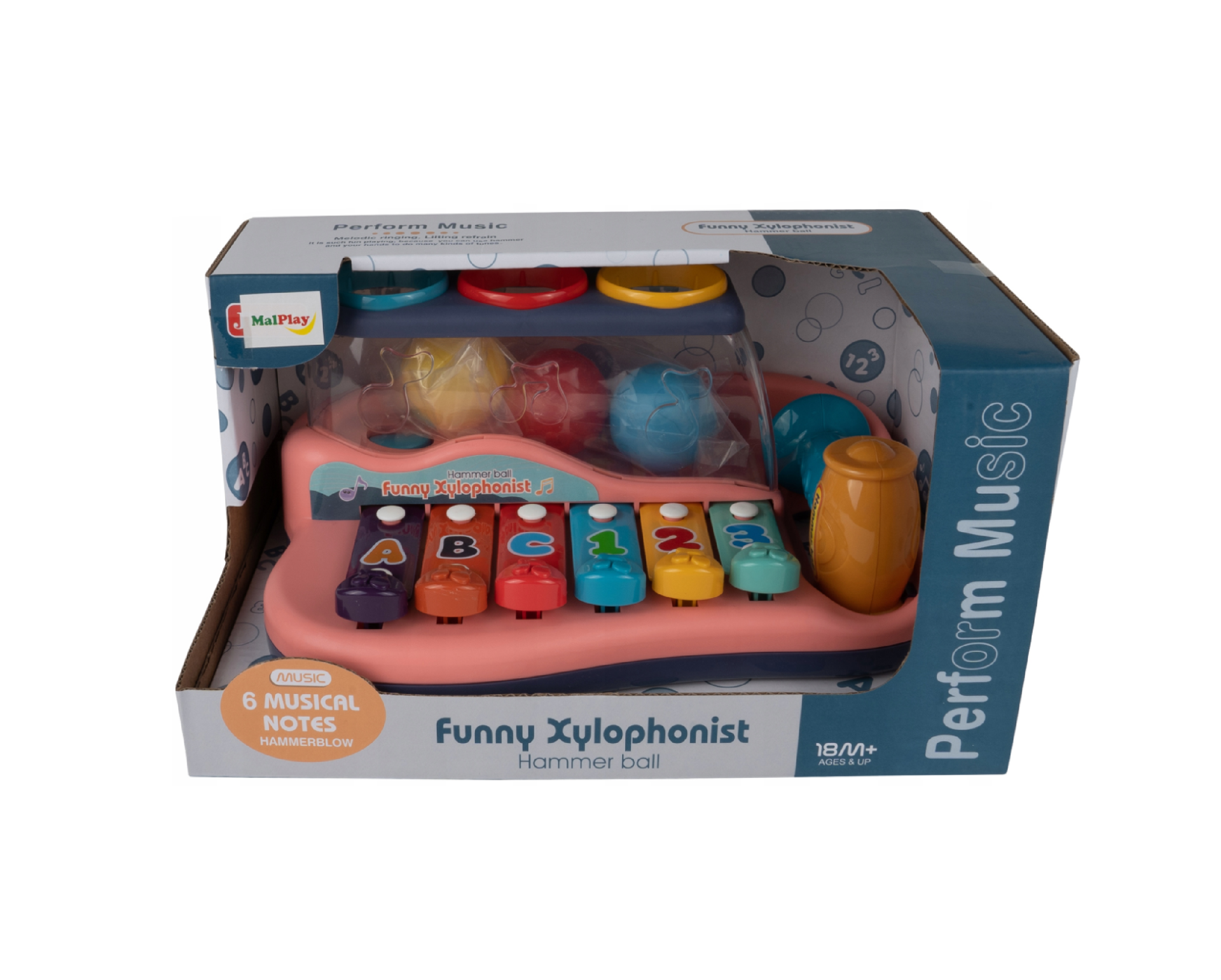Setul include 3 bile de diferite culori , care prin lovire vor distra copilul cu diverse efecte sonore, iar caderea laterala in jgheab il va incuraja pe copilul nostru sa continue sa se joace.