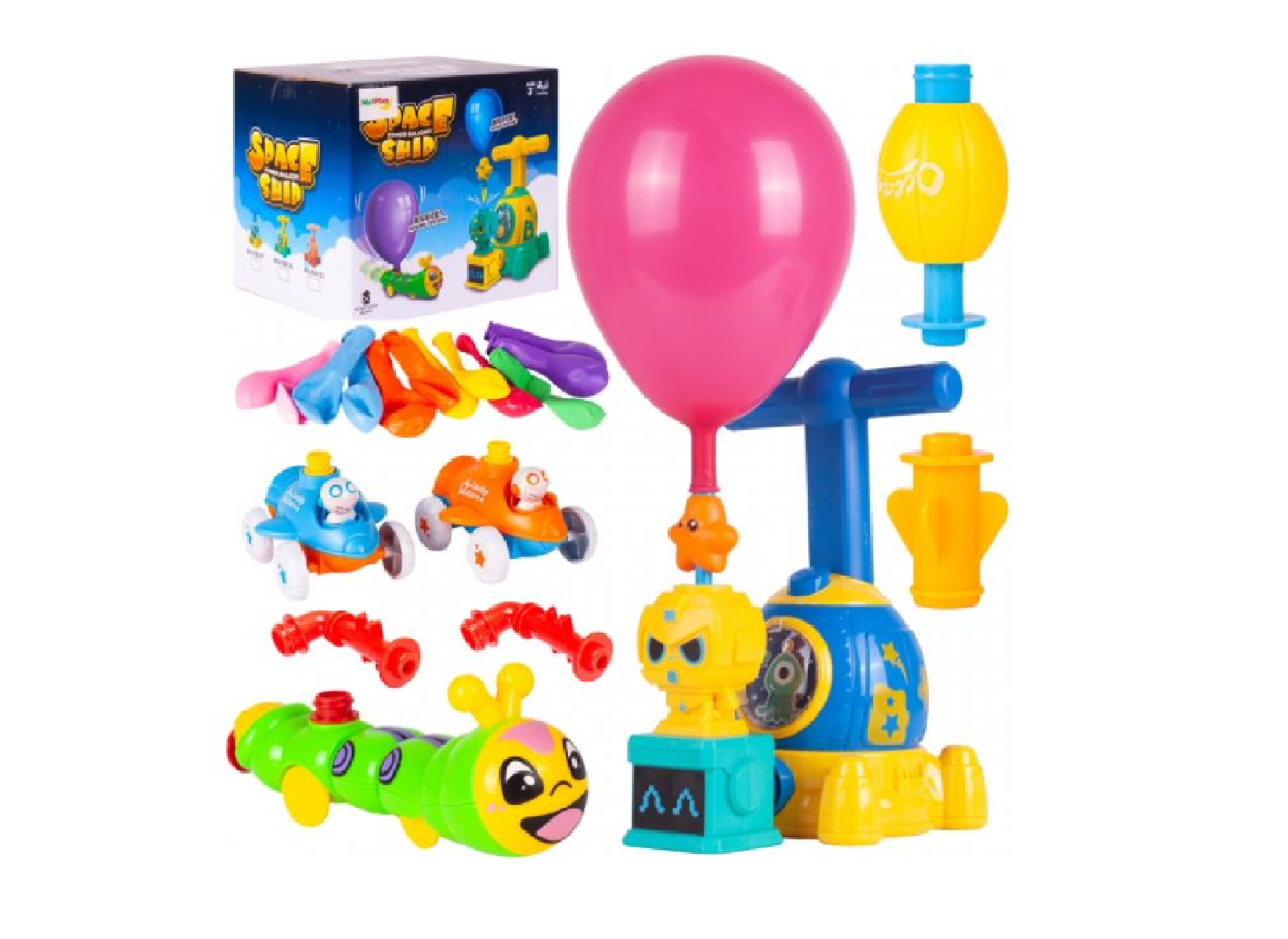Jucariile sunt propulsate prin recul de aerul care iese din balon. Setul include 12 baloane.