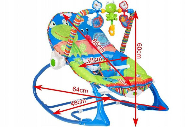 Designerii l-au creat cu scopul de a-i dezvolta fizic încă din primele momente ale vieții unui copil și de a stimula dezvoltarea simțurilor lor. Șezlongul este destinat copiilor din primele zile de naștere. Are un sistem special de vibrații care îl face să vibreze ușor, care ajută la calmarea bebelușului și este de neînlocuit atunci când bebelușul are colici. O bandă cu jucării este atârnată deasupra capului copilului. Când trage de jucăria din mijloc, aude o melodie veselă. Banda poate fi îndepărtată după cum este necesar. Datorită patinei profilate, bouncer-ul poate fi folosit ca basculant. De asemenea, poate fi blocat astfel încât să nu se balanseze în timpul hrănirii. Șezlongul are un spătar reglabil și centuri de siguranță în trei puncte