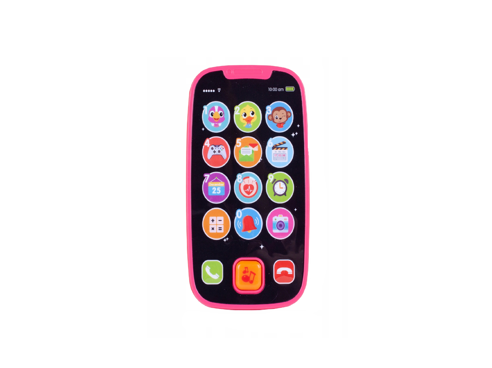 Telefonul are 14 butoane tactile si o tasta - fiecare este responsabil pentru o functie diferita. Fiecare interactiune a copilului provoaca o reactie a dispozitivului, acesta raspunde cu sunete, melodii, lumini.