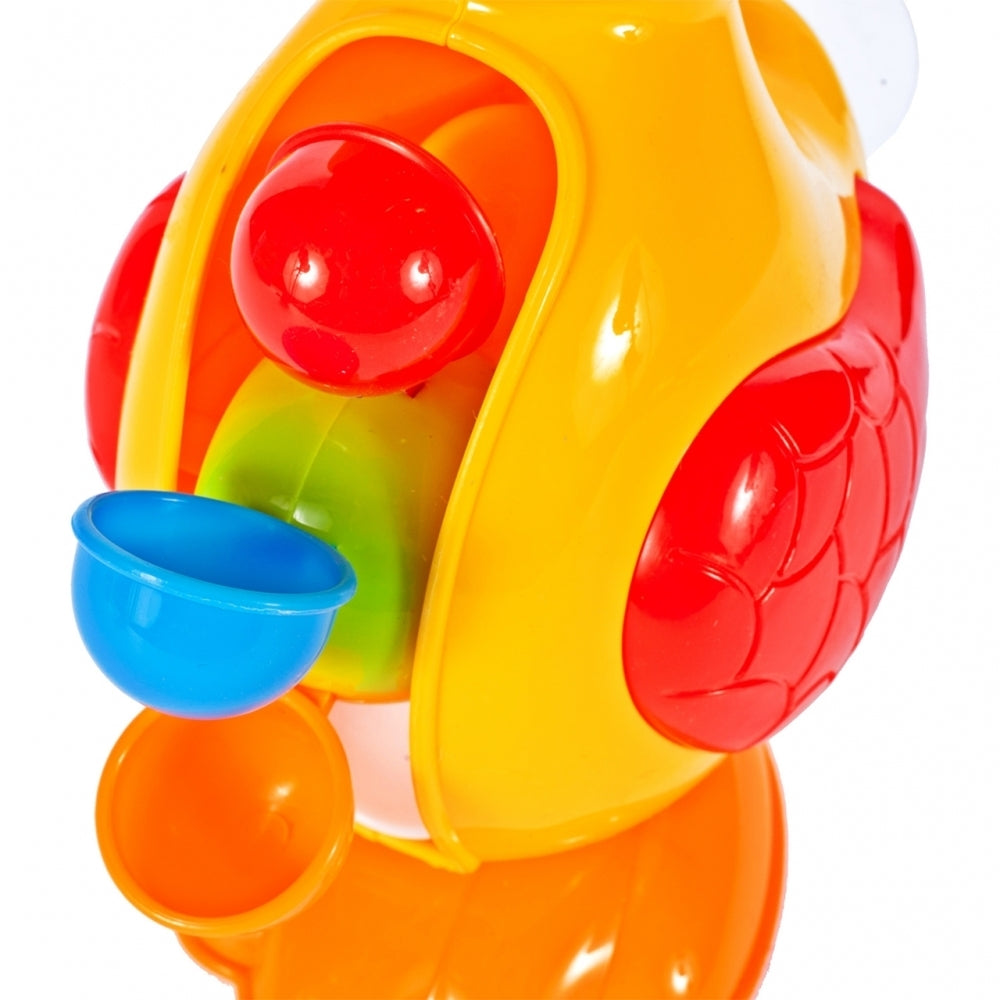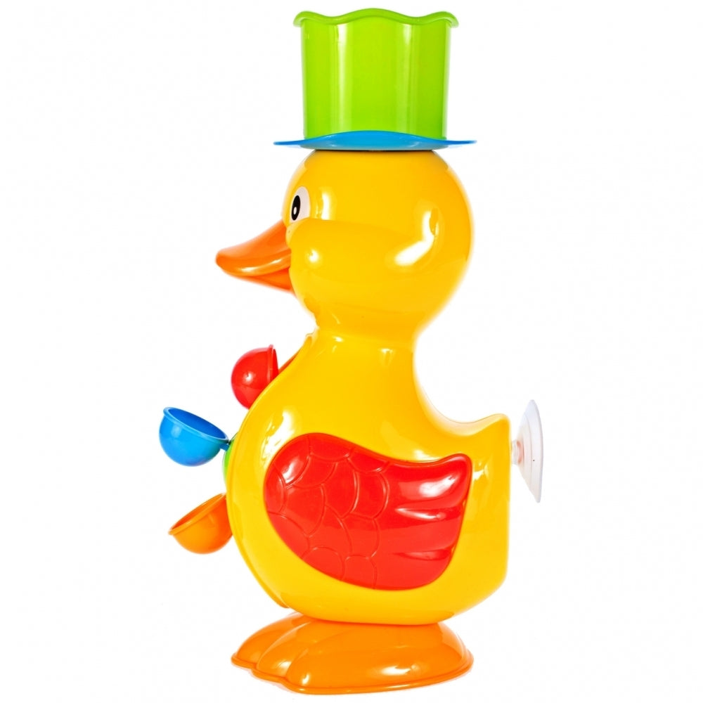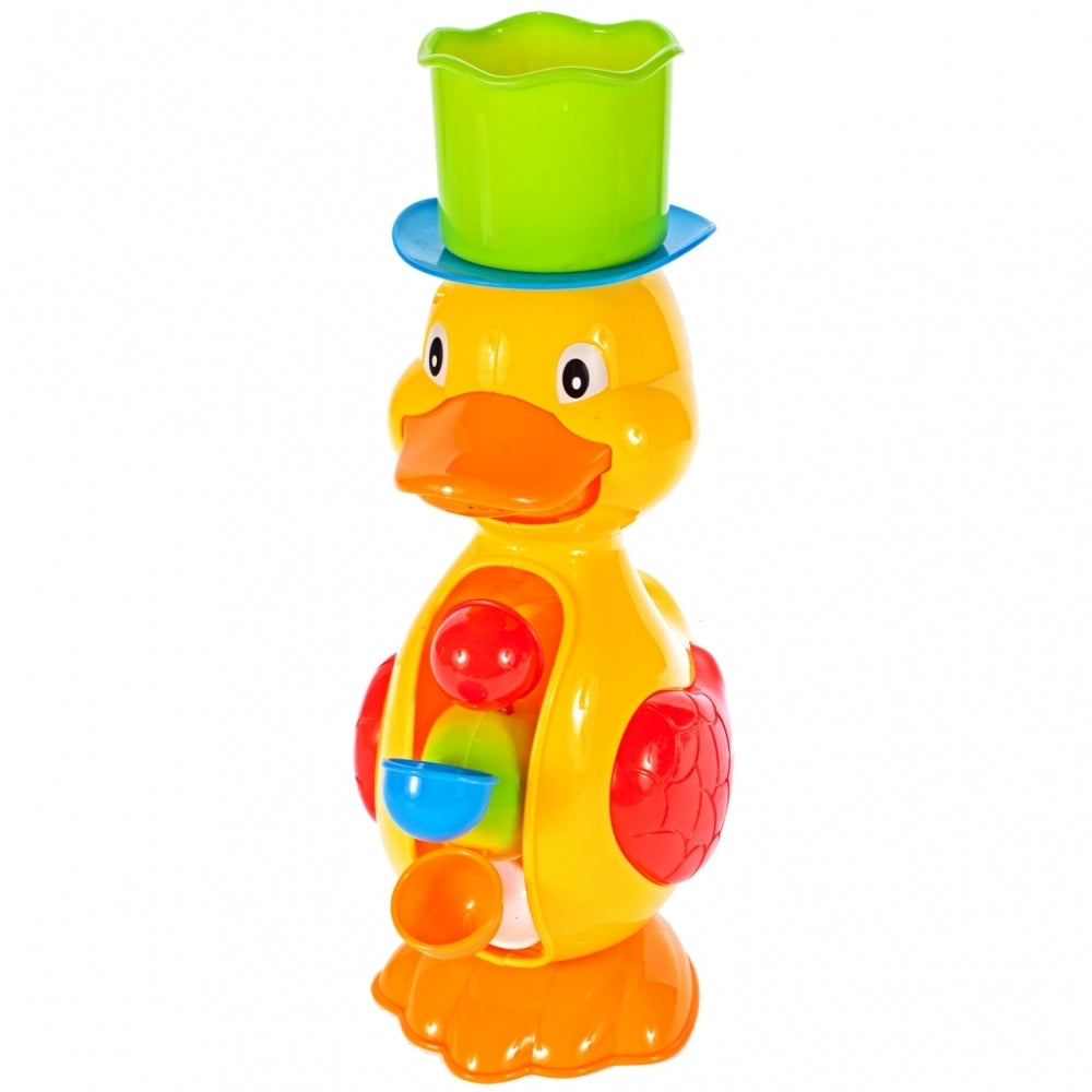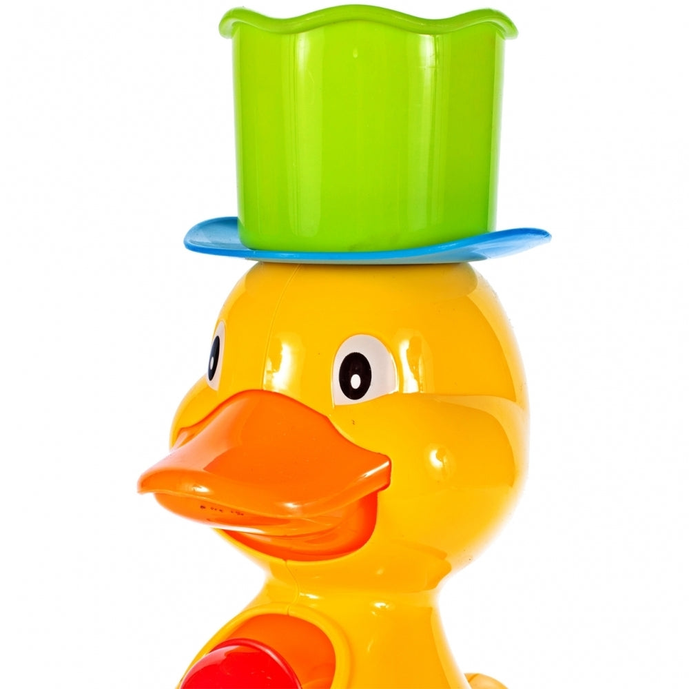 O jucarie vesela în forma de rata dragut este destinata distractiei în timp ce faceti baie în cada si piscina. Ratusca va fi, de asemenea, o solutie excelenta pentru parintii al caror copil se teme si refuza sa faca baie. Ratusca galbena este decorata cu detalii colorate, precum si o palarie si o mulineta. Jucaria este asezata pe un tampon care garanteaza stabilitatea - o ventuza este asezata pe spate, astfel încat jucaria sa poata fi atasata la peretele baii sau la cada. Ar trebui sa scoateti apa în ceasca furnizata împreuna cu setul si apoi sa o turnati în palaria asezata pe capul de rata. Apa va iesi din gura si apoi va curge în jos prin tambururile colorate, punandu-le în miscare.