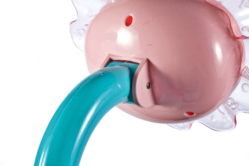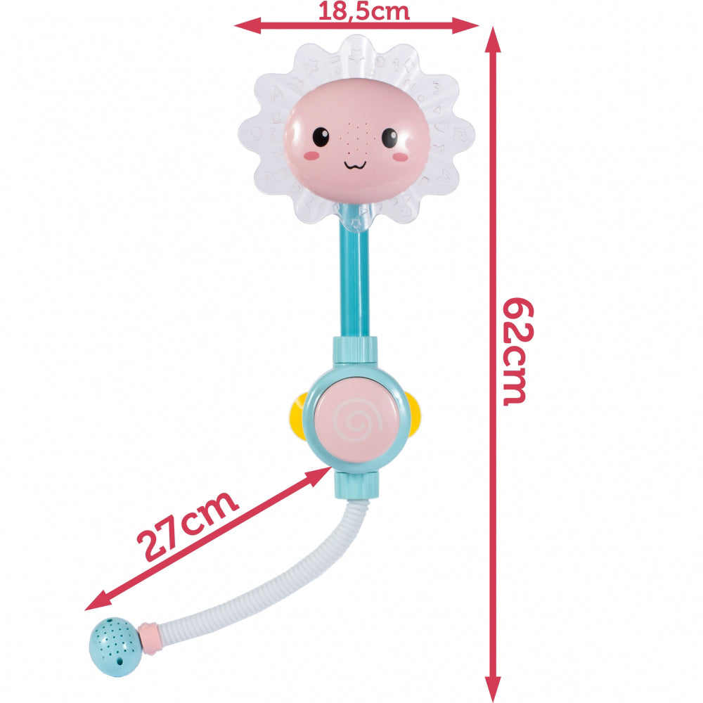 Jucaria de baie,sub forma de floare,va face baita copilului mult mai placuta si mai antrenanta.Astfel se poate spala precum un adult,la dus copilul apasa butonul din mijloc si apa iese.