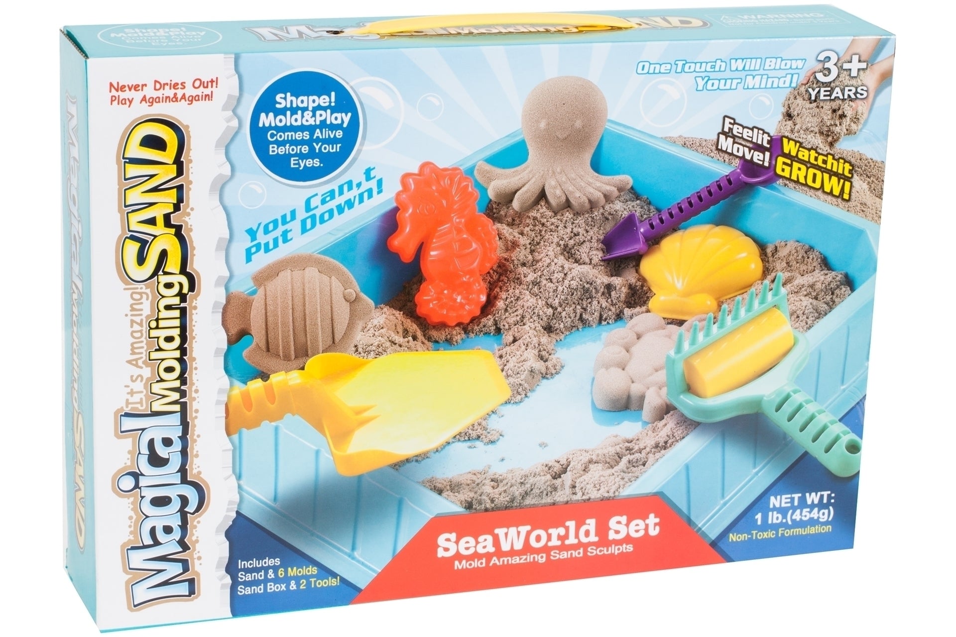 Set forme si cutiuta cu nisip cinetic 9 piese, Malplay 104496