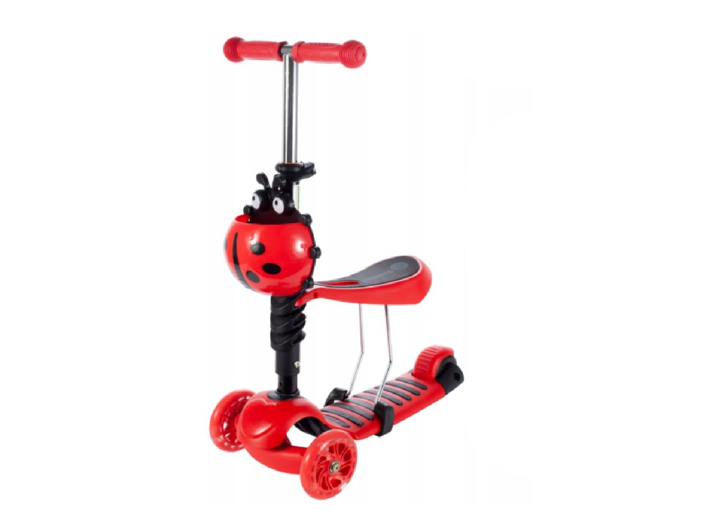 Trotineta buburuza cu luminite LED, rosie, Malplay 109344