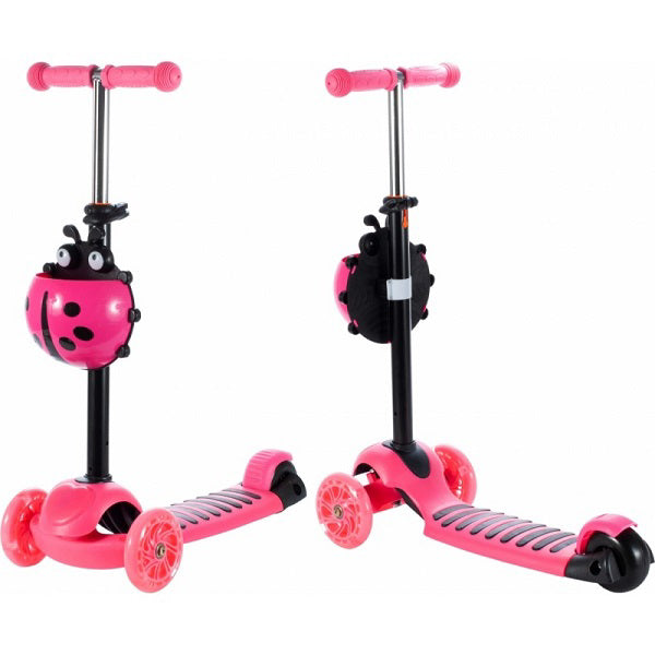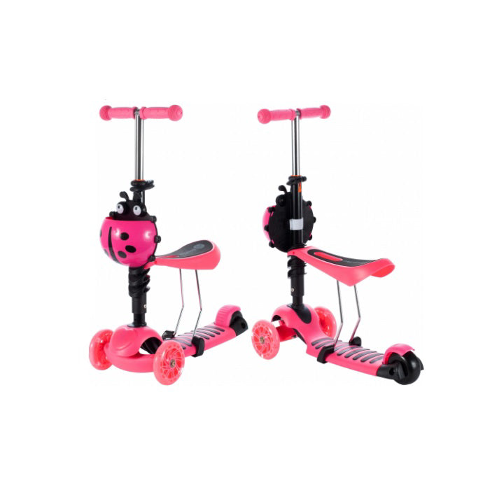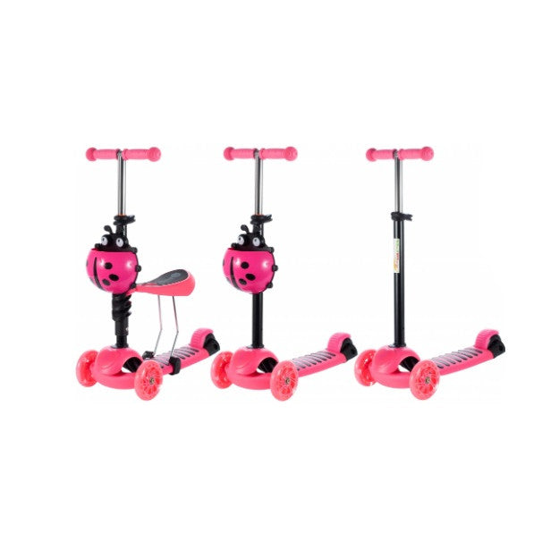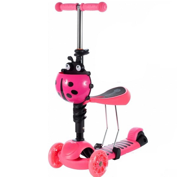 Trotineta pentru copii MalPlay 2 in 1 cu scaunel si roti luminoase, Roz