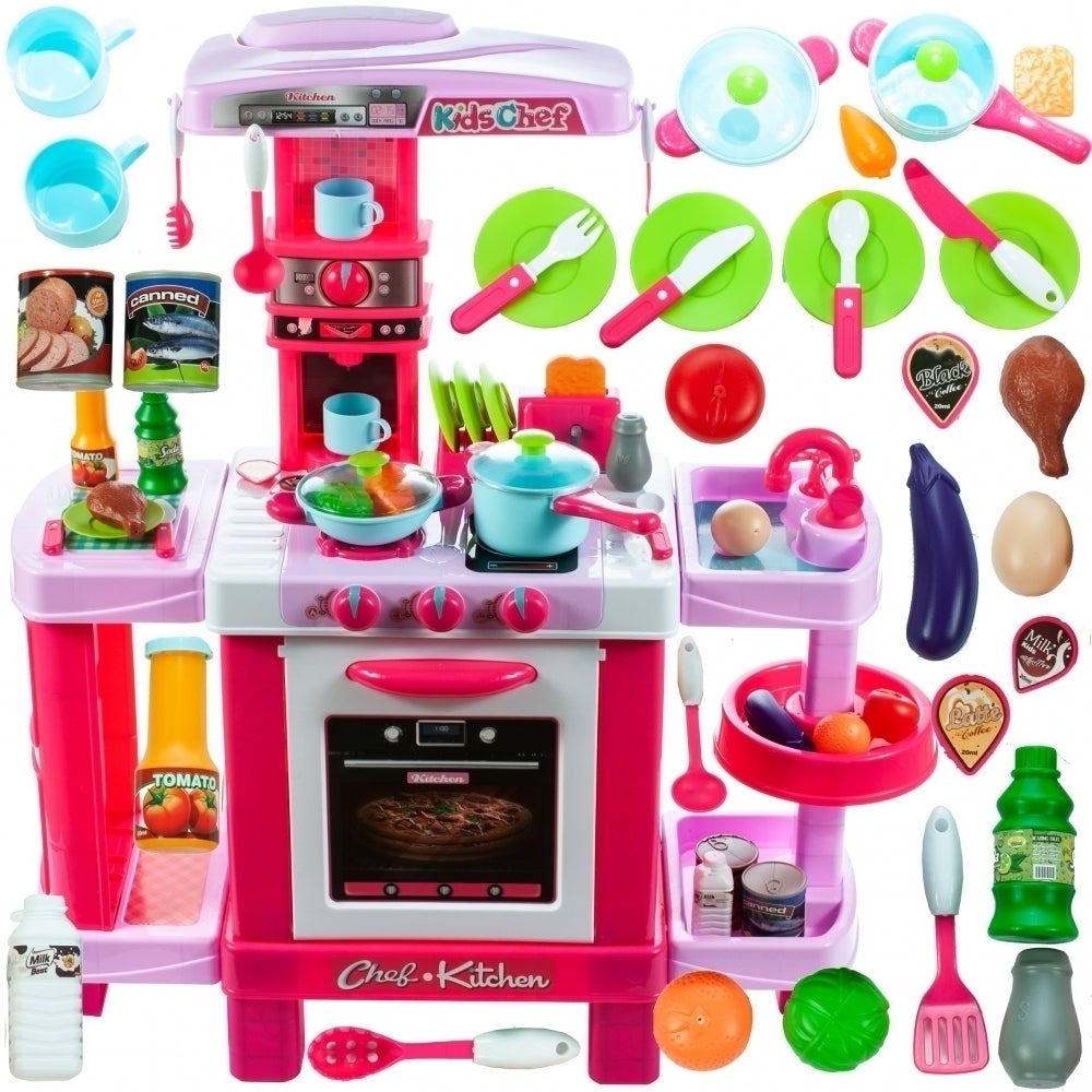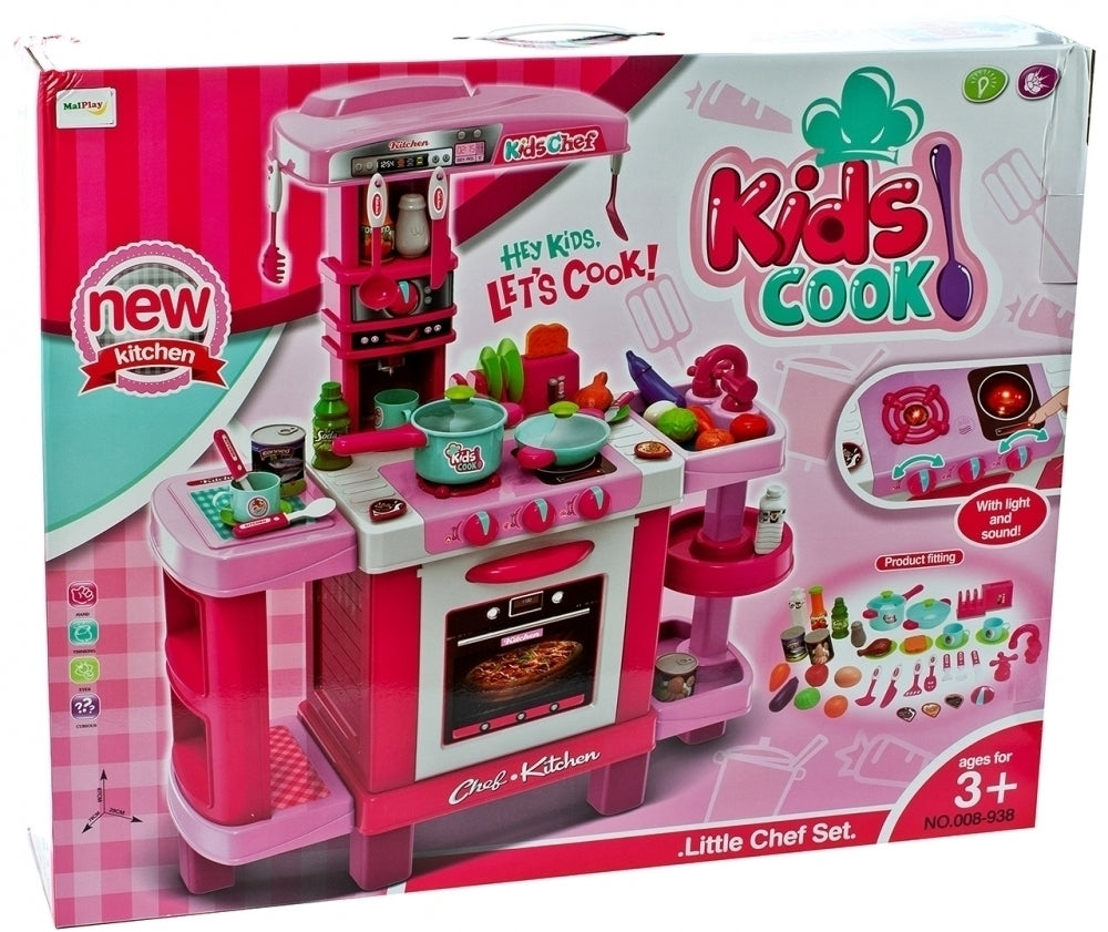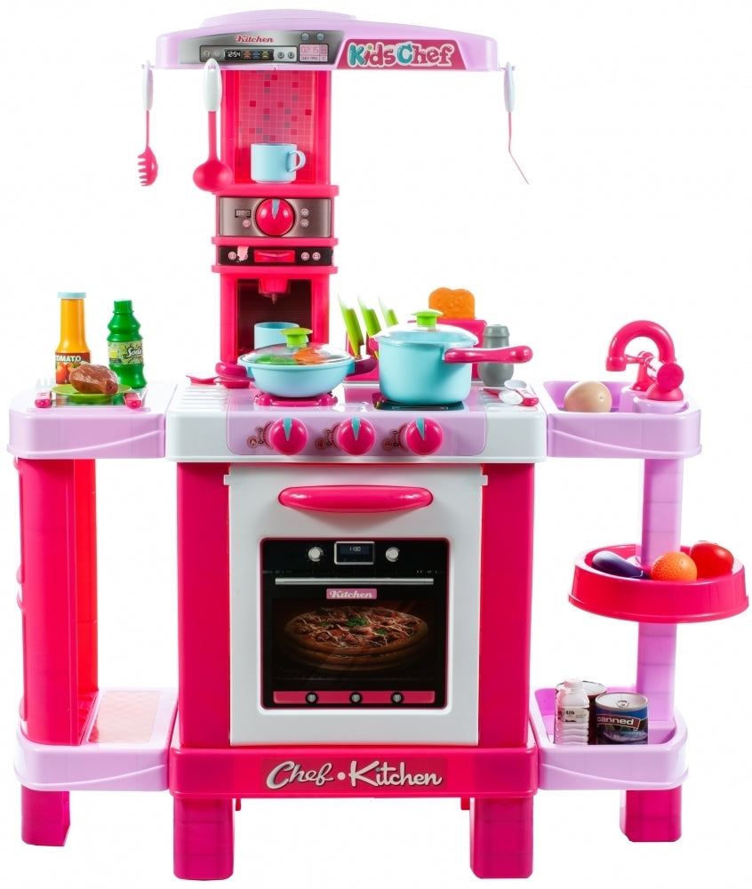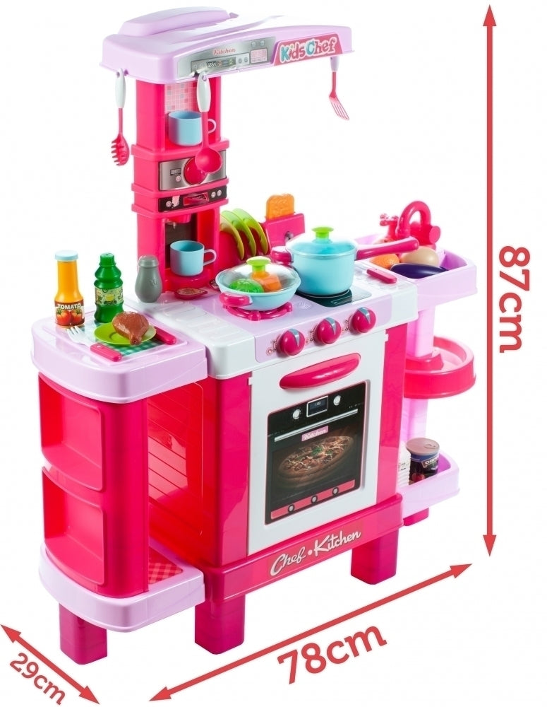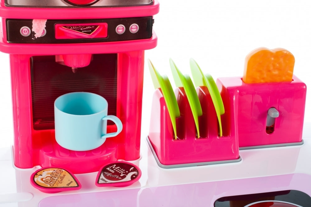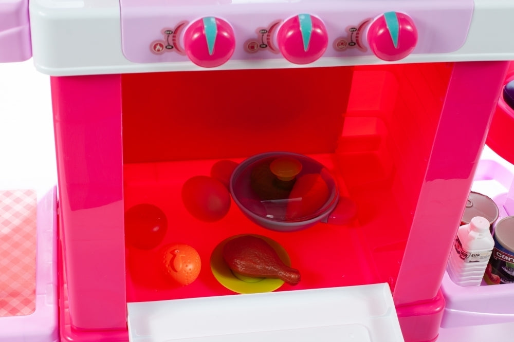 Aragazul dezvoltă fanteziile copilului tău, oferindu-i în același timp multă distracție. Copilul dvs. se poate simți ca un adevărat bucătar, gătind felurile de mâncare care le plac. Setul include o mulțime de elemente care nu numai că vor mulțumi copilul mic, ci și vor dezvolta abilitățile sale manuale. Bucătăria noastră este un element inseparabil al echipamentului fiecărui tânăr bucătar. Copiii vor găsi o sobă cu arzător pe gaz și un arzător cu inducție. Robinetele pentru controlul aragazului sunt amplasate pe blatul superior. Prin rotirea primului buton, arzătorul de gaz pornește și scoate un sunet de gătit. După întoarcerea celui de-al doilea, cuptorul pornește și ne anunță când mâncarea este gata. Al treilea buton pornește arzătorul cu inducție, puterea acestuia putând fi redusă sau mărită cu ajutorul panoului tactil. Există o chiuvetă lângă cuptor.