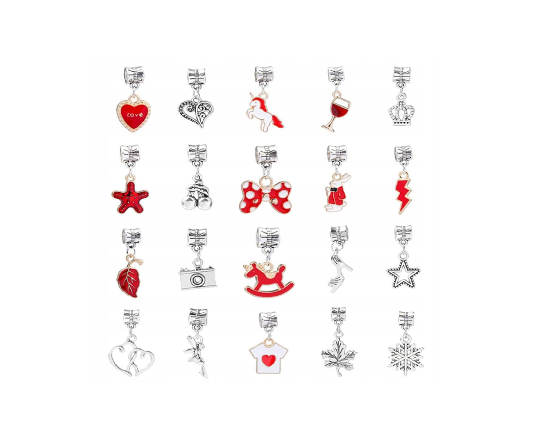 - margele distantiere metalice cu diverse pandantive; diametru cca 0,5-1 cm; lungime: aproximativ 3 cm