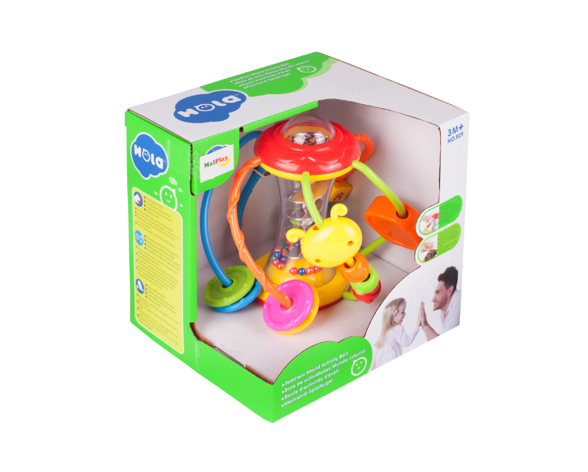 O jucarie ambalata intr-o cutie draguta colorata; O minge colorata - un zdranator va incuraja fiecare bebelus sa se joace, pentru ca acolo va gasi: