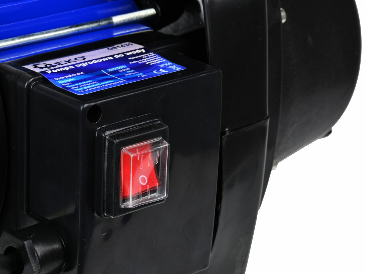Pompă de grădină electrică, utilizată pentru apa curată, utilizare la nivel rezidențial, cu tip de curent monofazat, fiind de culoare albastru/negru.