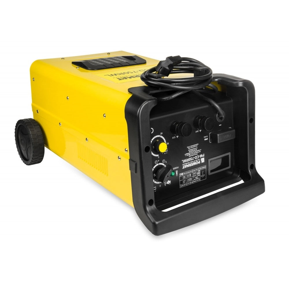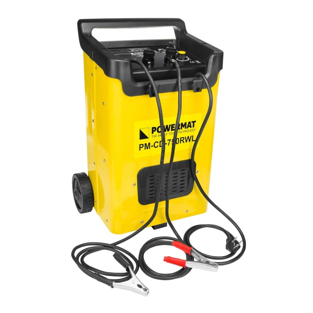 Încărcător automat și precis de baterie de înaltă calitate, cu demaror POWERMAT PM-CD-750RWL. Funcționează excelent în servicii de mașini și ateliere profesionale, precum și în garaje de acasă. Dispozitivul se poate încărca cu 12V și 24V. Are funcția de pornire a motoarelor pe benzină și diesel. Funcția de încărcare rapidă vă permite să creșteți curentul, datorită căruia bateria va fi încărcată mult mai rapid, în special cu baterii cu capacitate mai mare. Ampermetrul încorporat instalat în dispozitiv indică nivelul de încărcare a bateriei și puterea consumată în momentul pornirii vehiculului. Redresorul a fost echipat suplimentar cu un contor de timp de încărcare, cu posibilitatea de reglare de la 1 minut la maxim 60 de minute. În intervalele mai mari ale curentului de încărcare, este necesar să setați timpul maxim de încărcare a bateriei pentru a nu deteriora designul acestuia. Puterea mare permite utilizarea versatilă a redresorului. Redresorul are un amplificator digital, două conexiuni de curent PLUS 12v și PLUS 24v, o siguranță și un fir negativ montat permanent . În plus, dispozitivul este echipat cu un cronometru de până la 60 de minute Dispozitivul are o mulțime de opțiuni pentru configurarea volumului de încărcare și a funcției de pornire. Curent de încărcare configurabil în 6 intervale. Atunci când încărcați în intervalul 4 până la 6, este necesar să setați timpul de încărcare de la 1 minut la 60 de minute. Curentul la setările 4-6 este suficient de mare pentru a deteriora bateriile mai mici. Vă recomandăm să alegeți cu atenție curentul de încărcare, urmând formula de mai jos. Cu opțiunea de pornire, redresorul poate fi utilizat o singură dată pentru 5 rotații ale motorului sau maxim 120 de secunde. Când încărcați o baterie cu un dispozitiv atât de puternic, amintiți-vă că amperajul indică o putere care nu depășește 10% din capacitatea bateriei, de ex: curent de încărcare 20 Ah max 2A, 100 Ah curent maxim de încărcare 10A. Ecranul LED mare informează utilizatorul despre fluxul curent de energie. Datorită acestui fapt, putem adapta cu exactitate și ușor setările curente la bateria încărcată. În plus, echipamentul este echipat cu conexiuni de alimentare solide și o siguranță ușor accesibilă. Dispozitivele au o adâncime în care cablurile sunt ascunse în timpul transportului sau depozitării și un suport pentru cabluri proeminente. Încărcătoarele Powermat sunt echipate cu roți mari și solide, ceea ce facilitează transportul dispozitivului.