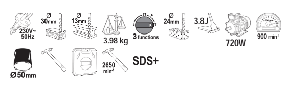 Ciocan rotopercutor Raider RDP-HD39, 24mm, 3 functii, 3,8J ,720W
