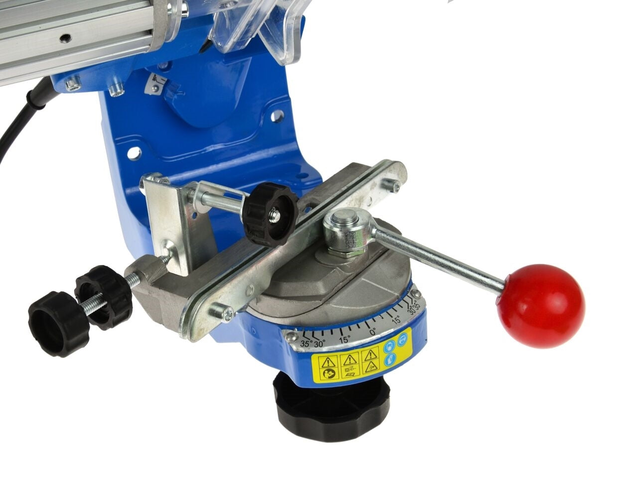 Dispozitivul asigură o ascuțire rapidă și precisă. Viza cu reglaj unghi de 35° la stânga sau la dreapta. Potrivit pentru toate tipurile de fierăstrău.