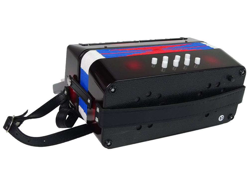 Acordeonul muzical este o jucarie fantastica pentru copiii carora le place muzica si distractia. Muzica relaxeaza si te pune intr-o dispozitie buna! Instrumentul arata ca un lucru real si suna foarte bine. Dezvolta perfect motricitatea si auzul copilului si il pregateste sa cante la un instrument adevarat.