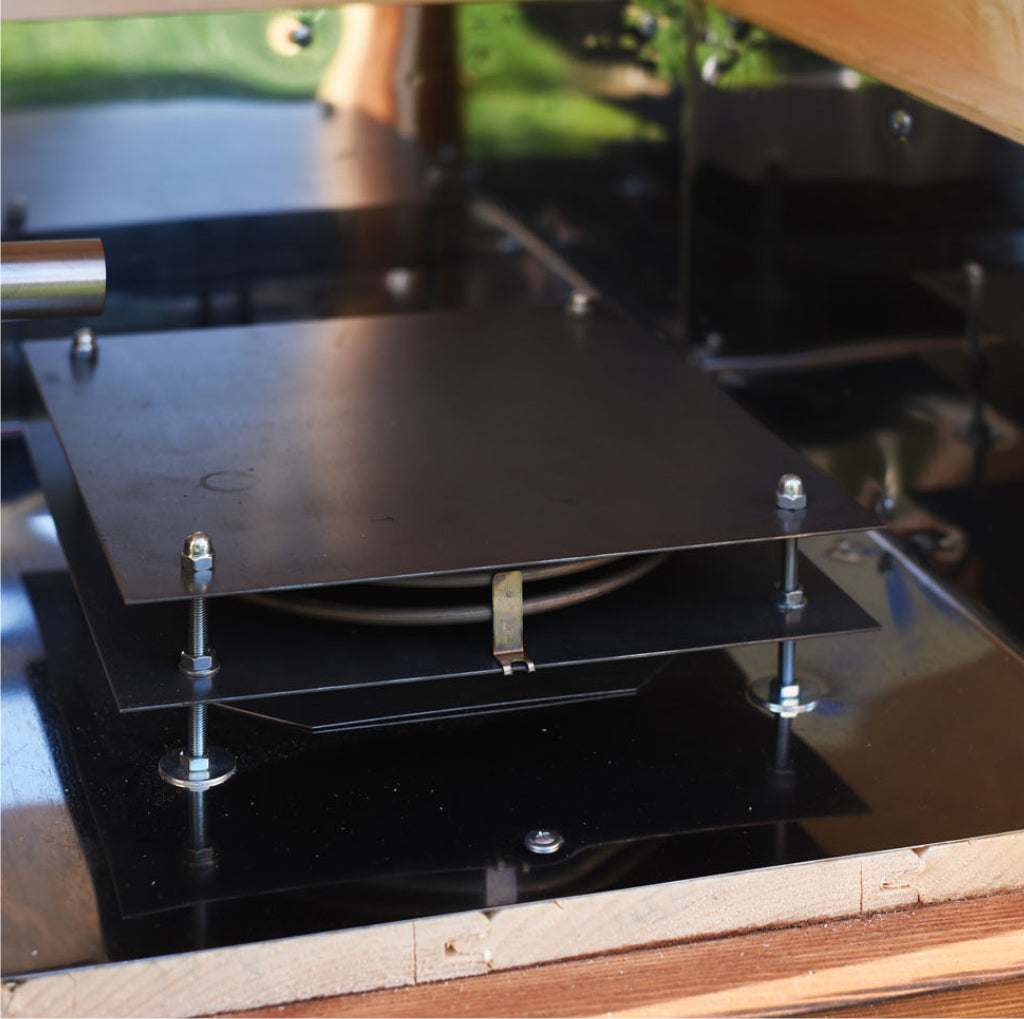 - dezumidificatorul este montat sub incalzitorul pentru afumator, produsele bine uscate inainte de afumare sunt o garantie a carnii afumate de succes.
