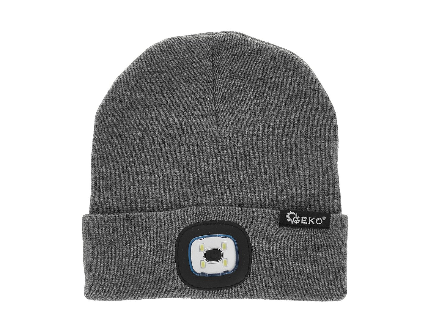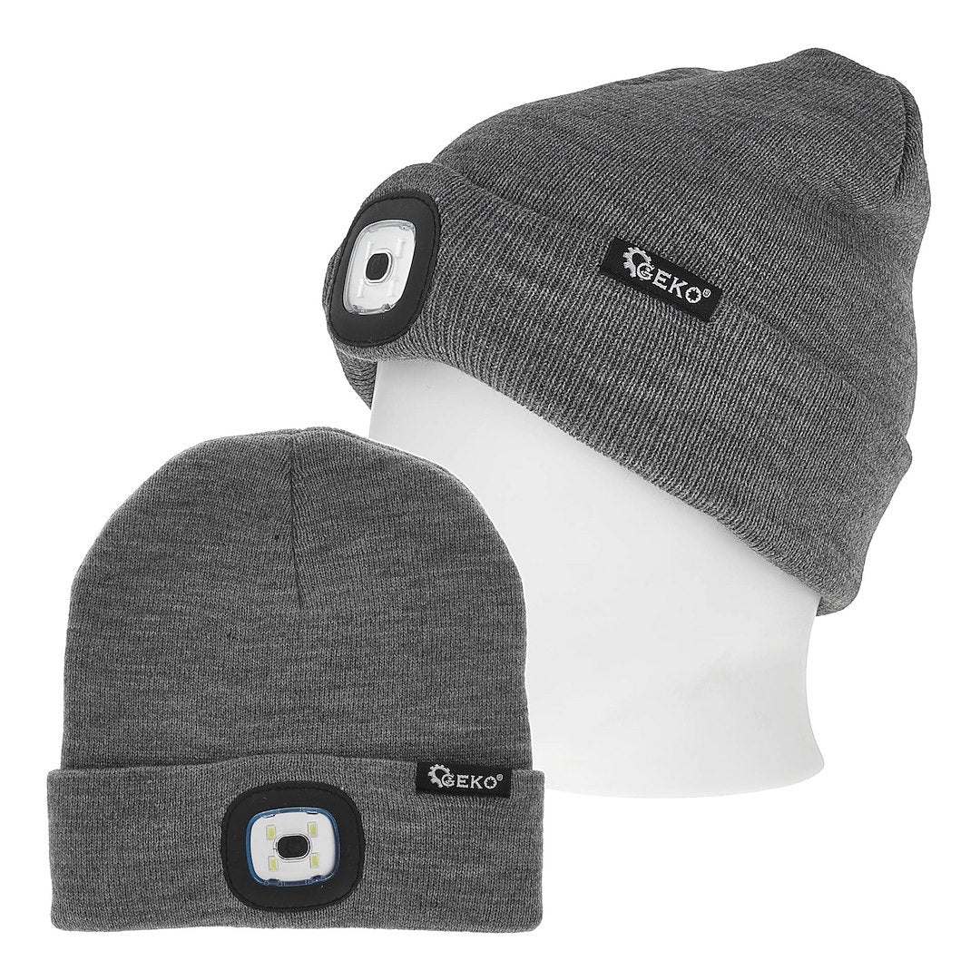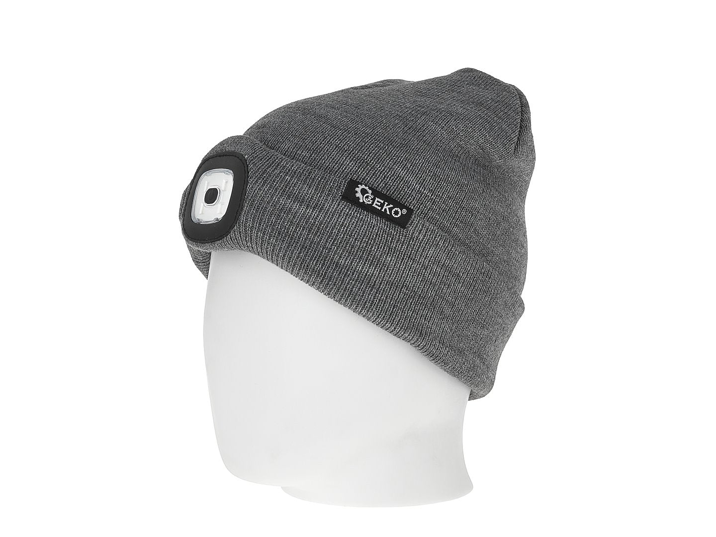 Caciula de iarna cu lanterna LED reincarcabila, gri, Geko G90410