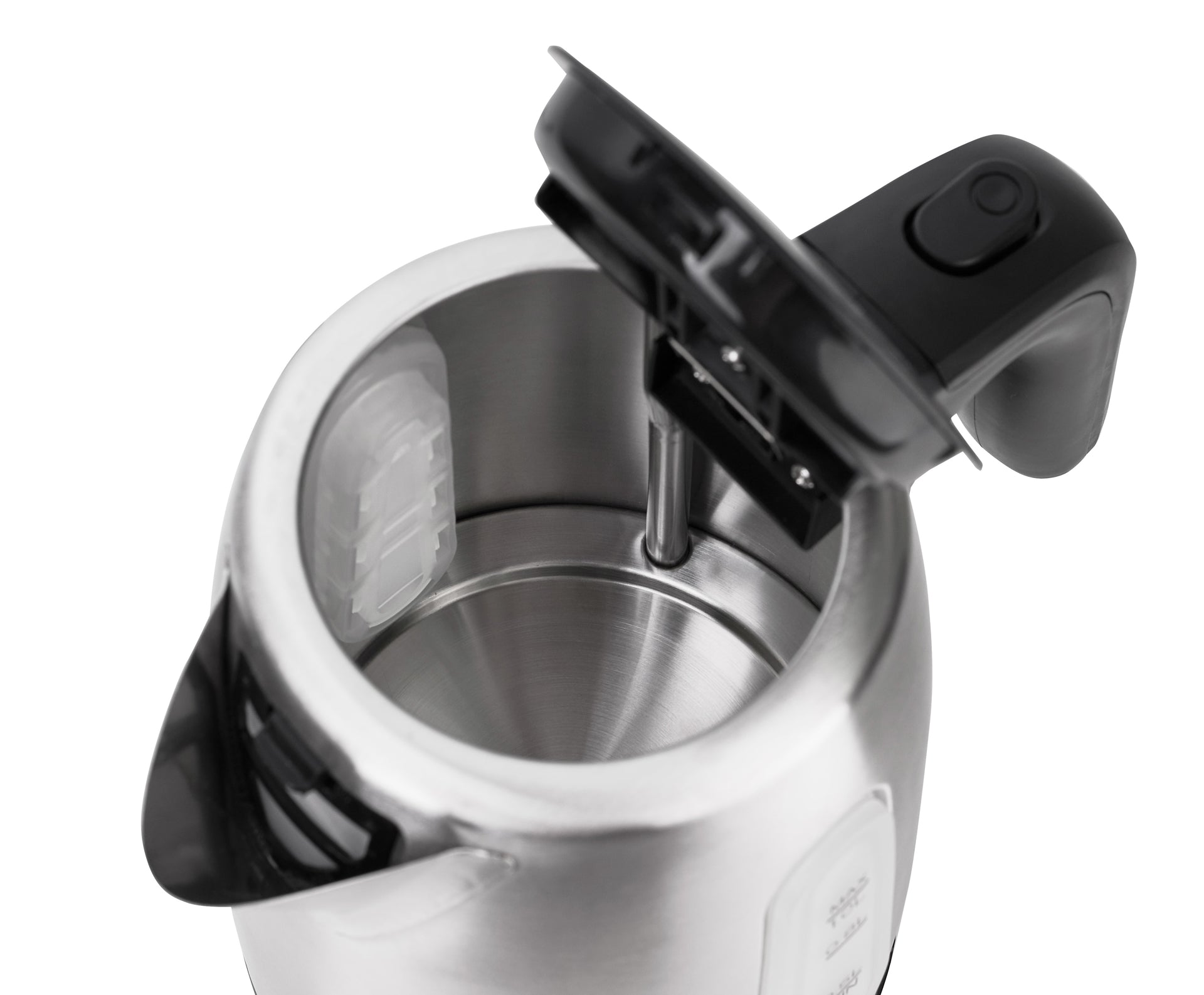 Fierbatorul electric clasic de 1 litru este util in fiecare bucatarie, birou si camin studentesc. Din motive de siguranta, este echipat cu o oprire automata care protejeaza fierbatorul de fierbere uscata si opreste fierbatorul imediat dupa ce apa fierbe. Fierbatorul este echipat cu un filtru care opreste sedimentele ceea ce imbunatateste gustul si calitatea apei. Functionalitatea sa este sporita de o baza stabila si de un indicator luminos de nivel al apei pe doua fete. Fierbatorul este fabricat din otel inoxidabil si este echipat cu un element de incalzire puternic de 1200 W, ceea ce il face un maestru de sprint in fierberea apei. Designul modern al ceainicului si carcasa argintie sunt completate cu o lumina pilot LED care informeaza ca apa tocmai a fiert.