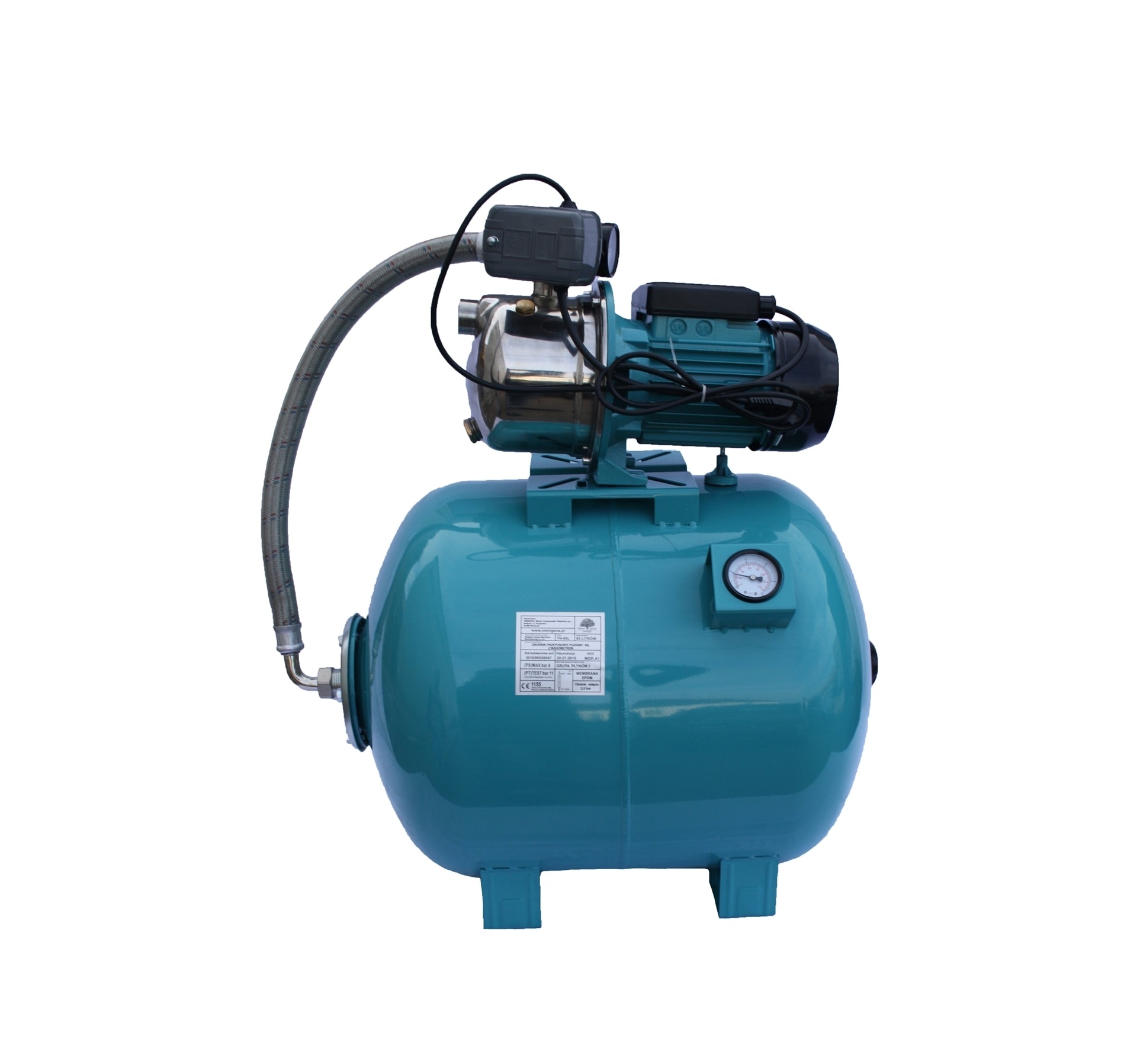 Hidrofor APC JY 1000/80 echipat cu bazin cu manometru de 80 Litri, putere 0.8 Kw, ideal pentru alimentarea locuintelor cu apa de consum. Utilizarea inoxului in constructia pompei asigura fiabilitate si greutate redusa, precum si posibilitatea utilizarii pentru apa potabila. Efectul autoamorsant se realizeaza prin ejectorul incorporat si sunt construite sa ramana amorsate chiar si in prezenta aerului. Hidroforul trebuie instalat intr-un loc protejat de intemperii. Motorul este echipat cu un senzor de siguranta impotriva supraincalzirii. Pompa este prevazuta cu un cablu de alimentare de 1 m si stecher CEE 7/7.