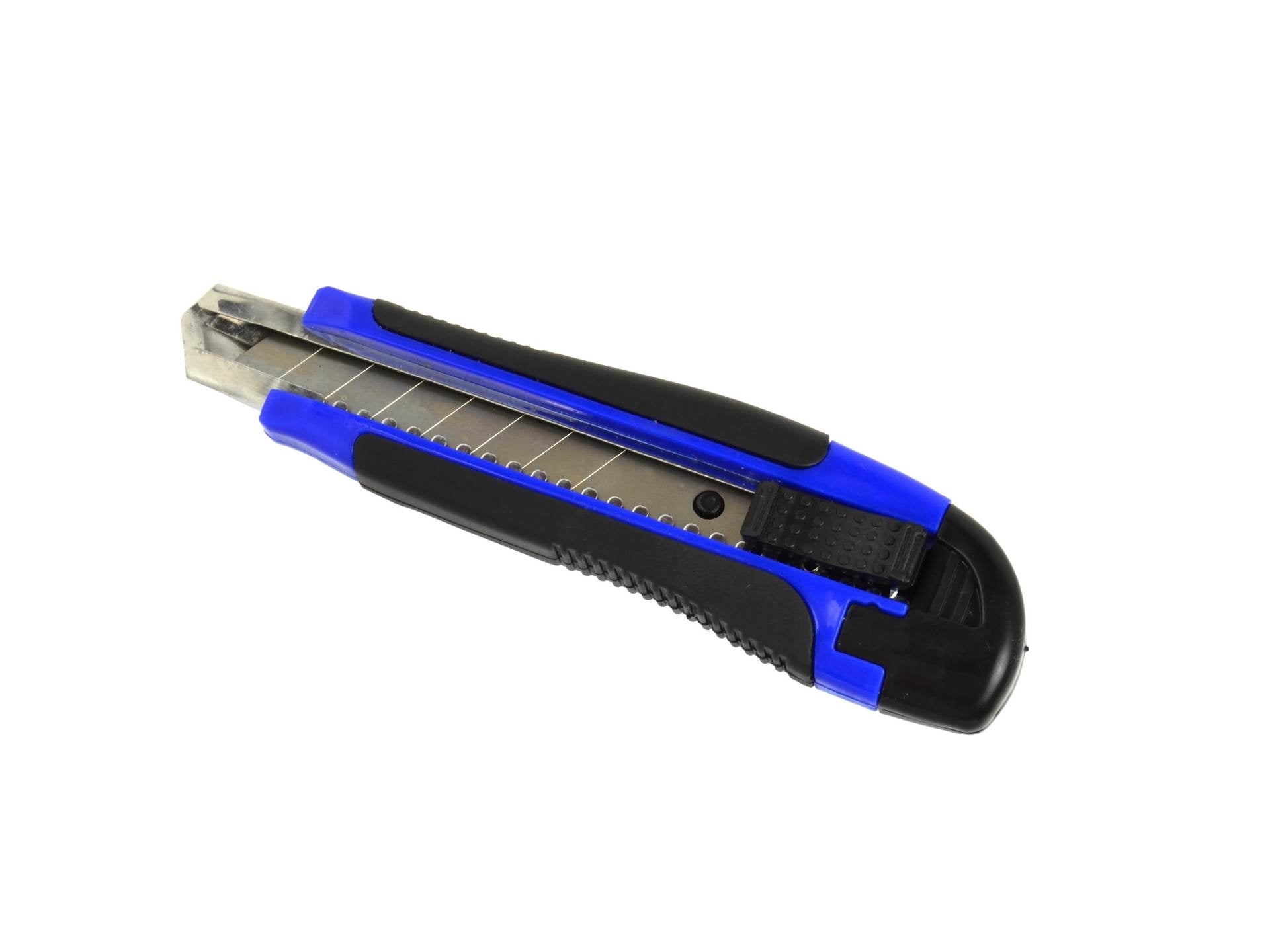 Un cuțit universal cu o lamă de 18 mm. Cuțit din plastic cu mâner conturat acoperit cu cauciuc antiderapant.