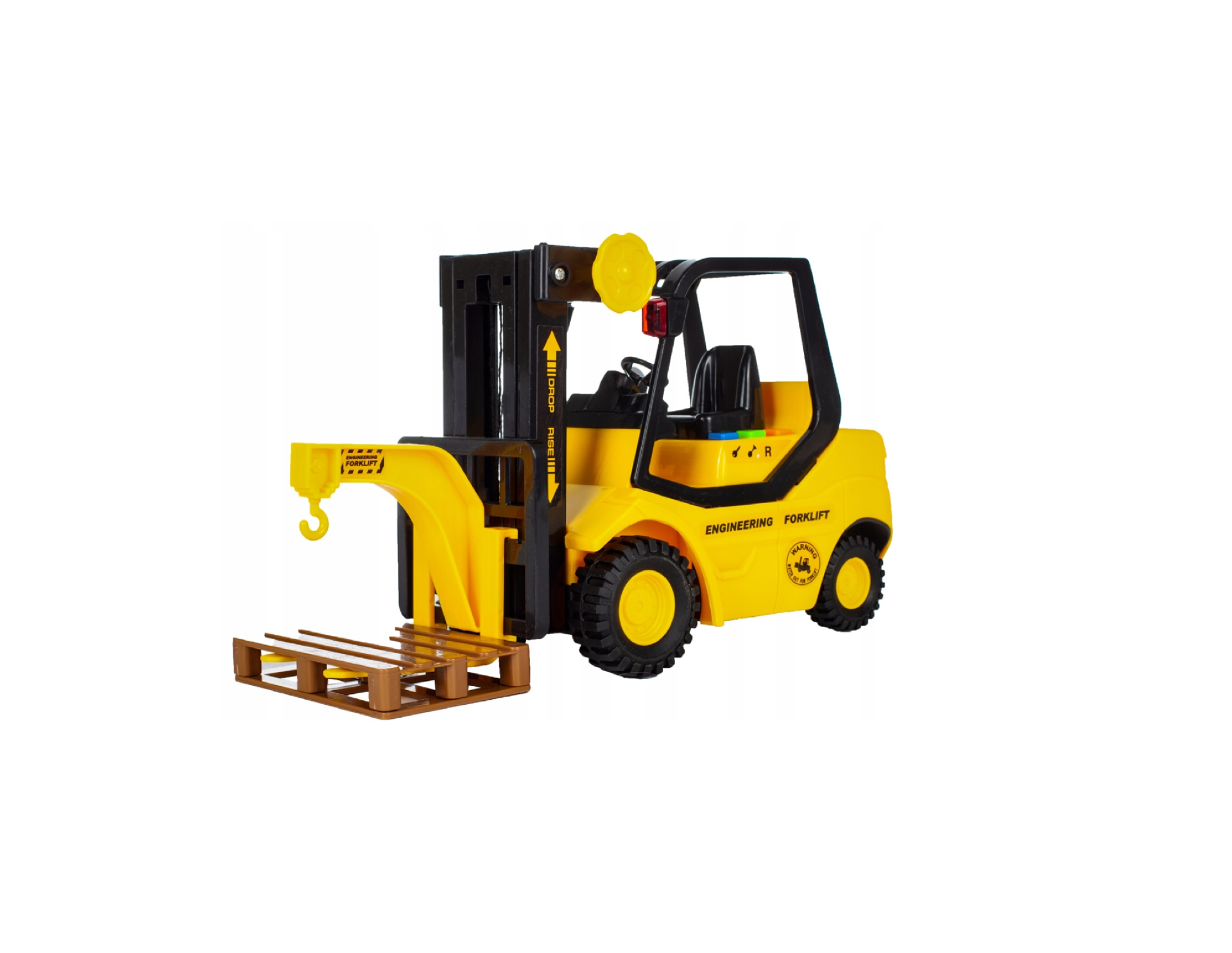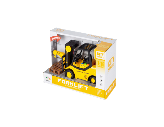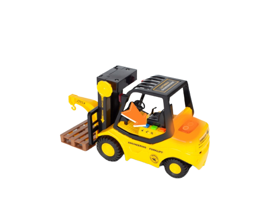 Aceasta masina are o unitate de frecare: dupa ce rotile care se afla pe sol sunt puse in miscare, se misca. Datorita rotilor largi de cauciuc, deplasarea este o placere pura si fara zgarieturi pe podea. Stivuitorul are 3 butoane care scot 3 sunete diferite, cu fiecare efect sonor luminile vehiculului clipesc: