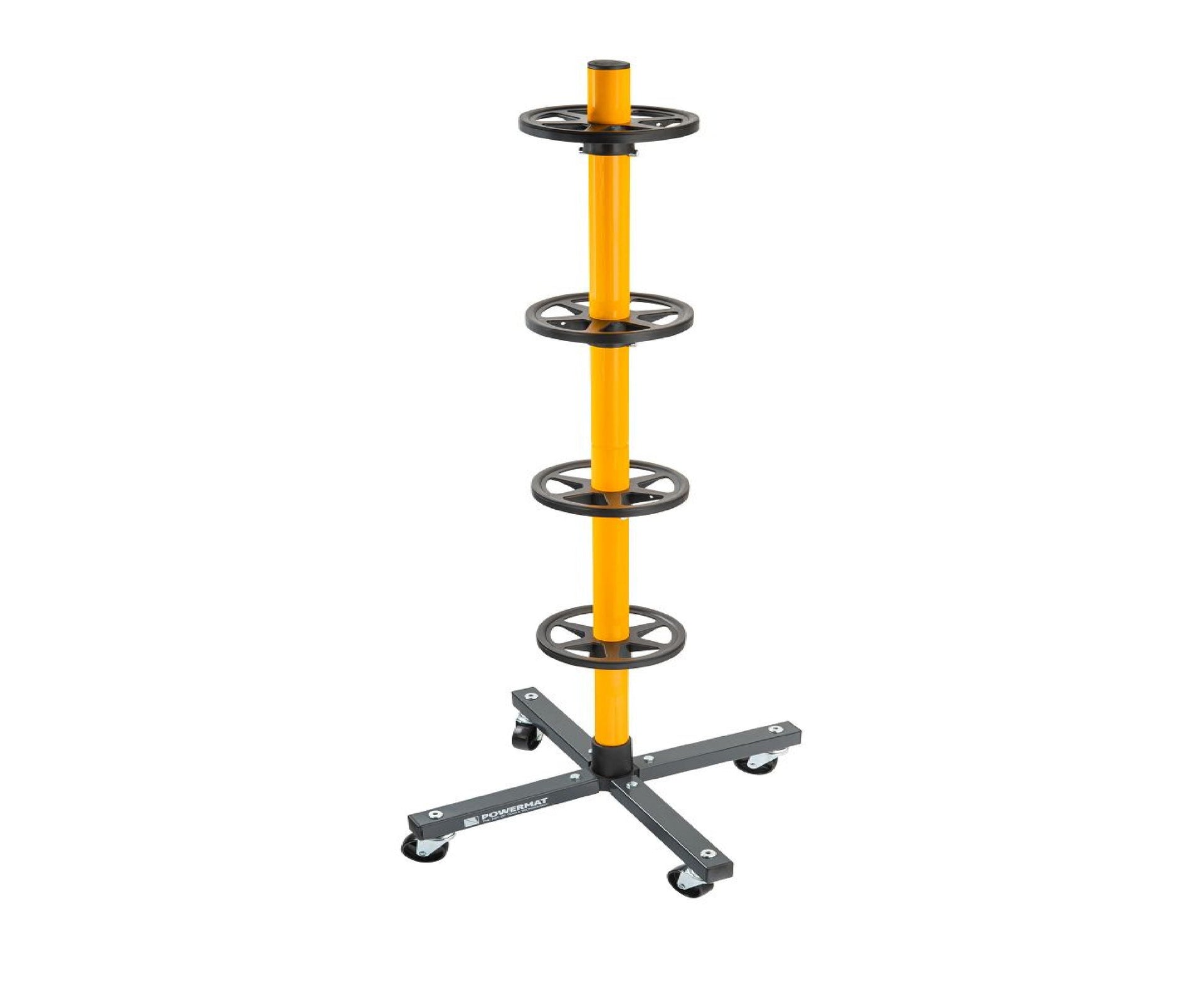 Suportul este echipat cu 4 roti care permit deplasarea libera a setului de roti fara a fi nevoie sa il ridicati.