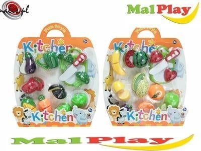 Warzywa, owoce do krojenia + deska i nóż kuchenny, to pomysł na zabawę dla dzieci lubiących pomagać w kuchni.